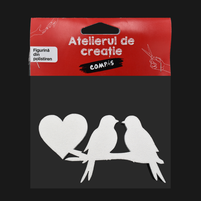 Accesoriile craft cu două păsări din polistiren sunt concepute pentru activități creative variate, fiind potrivite atât pentru copii, cât și pentru adulți pasionați de proiecte handmade. Realizate din polistiren alb, cu suprafață ușor texturată, figurine pot fi personalizate cu vopsele acrilice, markere, sclipici, hârtie colorată sau alte materiale decorative.