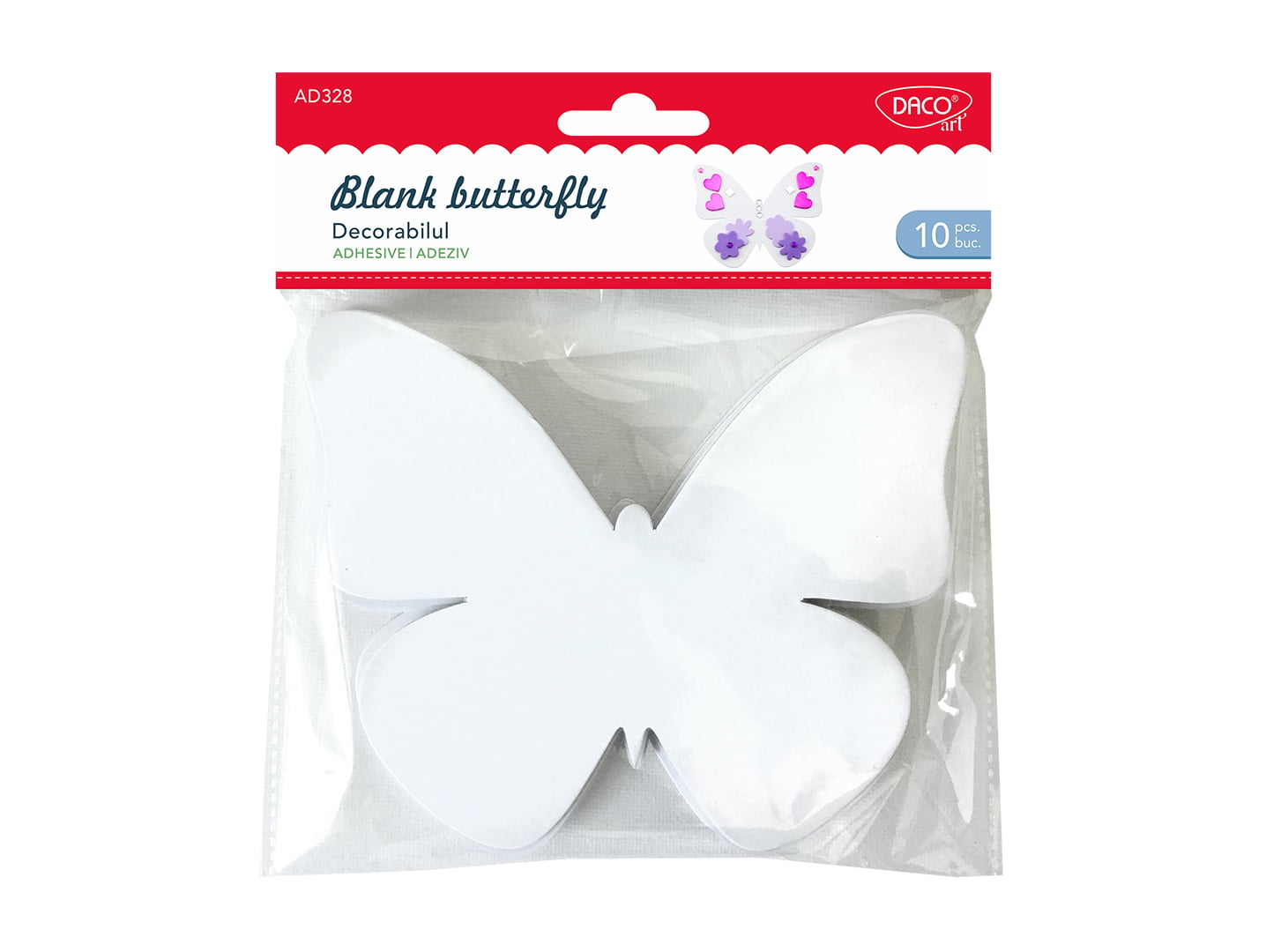 Setul conține 10 bucăți cu model de fluture din carton autoadeziv.