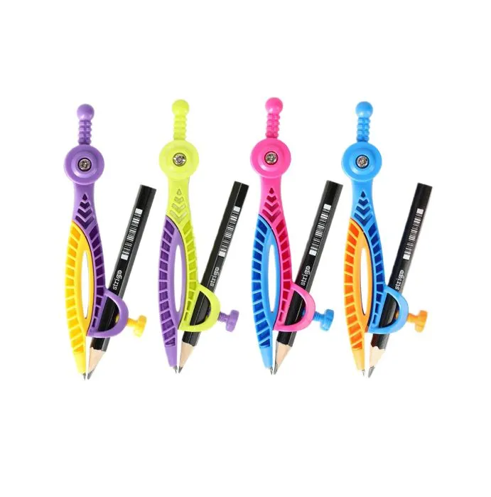 Compasul școlar Strigo este un instrument practic și ușor de folosit, ideal pentru exerciții de geometrie la școală. Realizat din plastic rezistent și disponibil în culori mixte, oferă o manevrare confortabilă. Este livrat cu creion inclus, gata de utilizare.