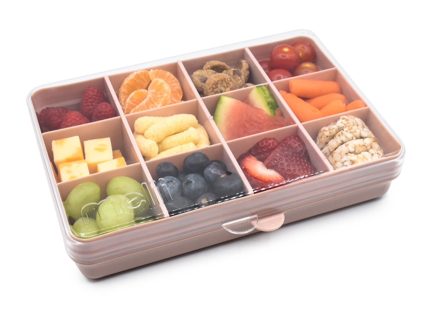 Cutie snack, Melii, roz Cutia noastra de gustari, Melii, roz, cu 12 compartimente este o versiune prietenoasa pentru copii a cutiilor traditionale de pescuit, cu deosebirea ca a noastra este 100% sigura pentru alimente si usor de deschis si inchis de catre cei mici. Aceasta permite si parintilor sa separe gustarile, biscuitii, fructele, legumele, branza si, de asemenea, preferatele copiilor. Face mai distractiv pentru copii sa aleaga si sa decida care e mancarea pe care vor sa o manance prima data. Cutia vine cu divizoare detasabile pentru a oferi optiuni flexibile de depozitare, potrivite atat pentru gustarile mici, cat si pentru cele mari. Umpleti fiecare compartiment cu diferite gustari pentru calatorii sau pentru a crea a charcuterie board fermecatoare. CARACTERISTICI PRODUS Capacul ermetic si antipicurare pentru a opri mizeriile. Plastic 100% sigur pentru alimente 12 compartimente individuale pentru gustari 3 divizoare detasabile pentru dimensiuni variate ale gustarilor Usor de deschis si inchis, perfect pentru degetele mici Se poate spala in masina de spalat vase Capacitatea compartimentului: 114 ml fiecare /4 oz