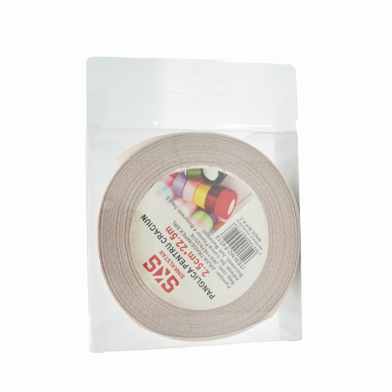 Panglică decorativă gri deschisă este potrivită pentru ambalarea cadourilor și realizarea decorațiunilor elegante. Nuanța neutră se integrează ușor în orice combinație cromatică. Este ușor de folosit și oferă un aspect ordonat și rafinat.