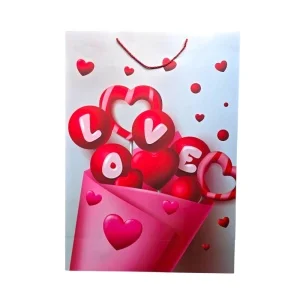 Pungă cadou foarte mare, decorată cu inimioare 3D și elemente romantice, ideală pentru cadouri impresionante și surprize speciale. Designul atrăgător, cu efect tridimensional și finisaj lucios, transformă orice dar într-o experiență memorabilă. Potrivită pentru Valentine's Day, aniversări sau ocazii romantice.