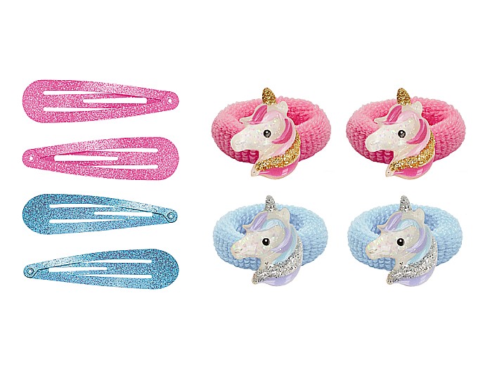 Încântă-ți micuța prin adăugarea unui strop de magie în coafura ei cu setul nostru complet de accesorii pentru păr destinat copiilor, având un adorabil model de unicorn.