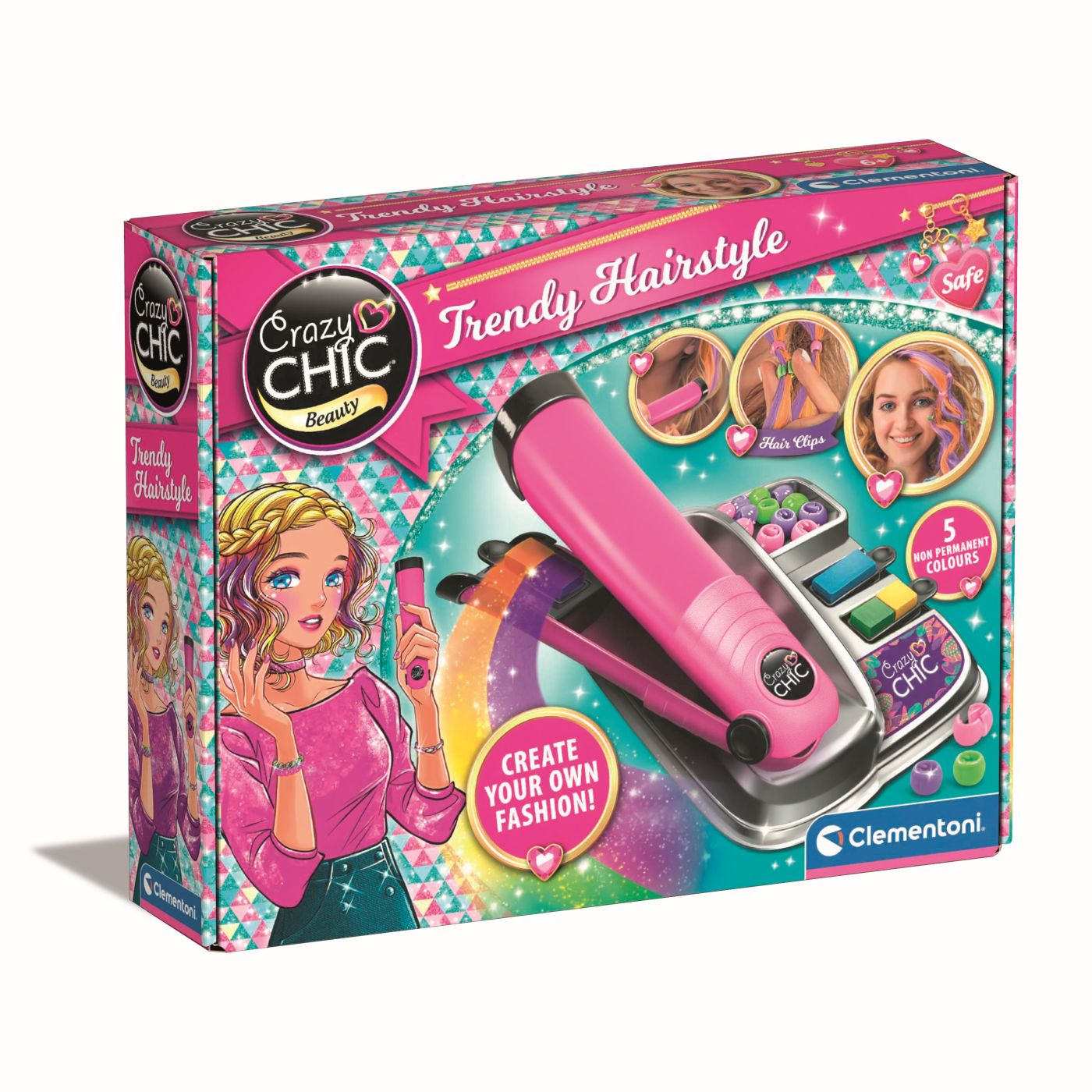 Creati coafuri uimitoare in culorile curcubeului cu noua trusa de colorare a parului de la Crazy Chic! Aparatul de coafat are un aspect modern, cu design profesional si este prevazut cu cartuse de culoare usor de schimbat. Totul se depoziteaza ordonat in statia de lucru inclusa. Cu o mare varietate de nuante si tonuri, este usor de folosit si le va permite fetelor sa experimenteze cu diferite look-uri. Setul include un set suplimentar de margele pe care le puteti folosi pentru a va ridica si personaliza si mai mult stilul!