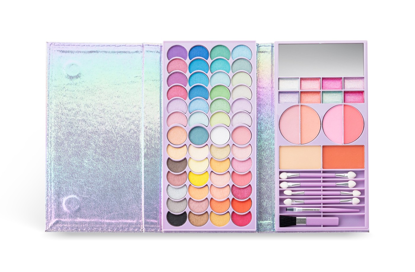 Simte-te ca o sirena cu aceasta paleta de machiaj holografica cu o coada de sirena 3D. Datorita formatului sau compact, este ideala de luat oriunde si de a te bucura de o seara nesfarsita de machiaj. Pachetul contine: 52 farduri de ochi, 8 luciuri de buze cu sclipici, 6 pudre compacte, 6 aplicatoare, 1 oglinda. Ingrediente Blush: Talc, Mica, Palmitat De Etilhexil, Caolina, Dimeticona, Polibutena, Stearat De Magneziu, Bis-Digliceril Poliaciladipat-2, Silice, Meticona, Fenoxietanol, Etilhexilglicerina., Acetat De Tocoferil. Poate Contine Ci 45410:2. Coloranti: Ci 15850:1, Ci 15850:2, Ci 77499, Ci 77891, Ci 19140:1, Ci 77491, Ci 77492. Ingrediente Fard De Ochi: Talc, Mica, Palmitat De Etilhexil, Caolina, Dimeticona, Polibutena, Stearat De Magneziu, Bis-Digliceril Poliaciladipat-2, Silice, Meticona, Fenoxietanol, Etilhexilglicerina, Acetat De Tocoferil. Poate Contine Ci 77742. Coloranti: Ci 77007, Ci 77288, Ci 77499, Ci 77891, Ci 42090:2, Ci 16035:1, Ci 77510, Ci 19140:1, Ci 77491, Ci 77492. Ingrediente Luciu De Buze: Ulei Mineral, Polibutena, Octildodecanol, Acid Hidroxistearic, Polietilen Tereftalat, Silice Dimetil Sililat, Polimetil Metacrilat, Fenoxietanol, Etilhexilglicerina, Acetat De Tocoferil, Parfum. Poate Contine Ci 45410. Coloranti: Ci 15850:2, Ci 15850:1, Ci 42090:2, Ci 19140:1. Martinelia este un brand care face parte din grupul Aquarius Cosmetic SL , principalul distribuitor de parfumuri si cosmetice in Spania inca din anul 1995. in ziua de astazi, brandul se gaseste in toata lumea, nu doar in Spania. Produsele brandului la Martinelia pot fi recunoscute cu usurinta datorita ambalajului unic si jucaus. in oferta brandului Martinelia veti gasi seturi de cadouri, accesorii pentru par, popularele balsamuri de buze aromate si alte accesorii care vin in ambalaje haioase. Copiii vor fi incantati de produse precum setul decorativ in forma de ursulet, peria de par unicorn sau periuta de dinti cu sirene. Martinelia ofera pentru cei mici o gama larga de produse distractive si inovatoare in toate culorile curcubeului. Seturi de machiaj, rujuri si tot felul de produse si accesorii concepute pentru a tine pasul cu ultimele tendinte. Produsele sunt sigure si prietenoase cu mediul fiind special proiectate pentru a putea fi folosite de copii.