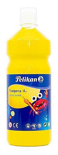 Acuarele Tempera, Pelikan, in flacon de 1 litru cu dop special pentru dozare precisa, vopsea pe baza de coloranti naturali, formula ecologica si non-toxica, culoare galben.