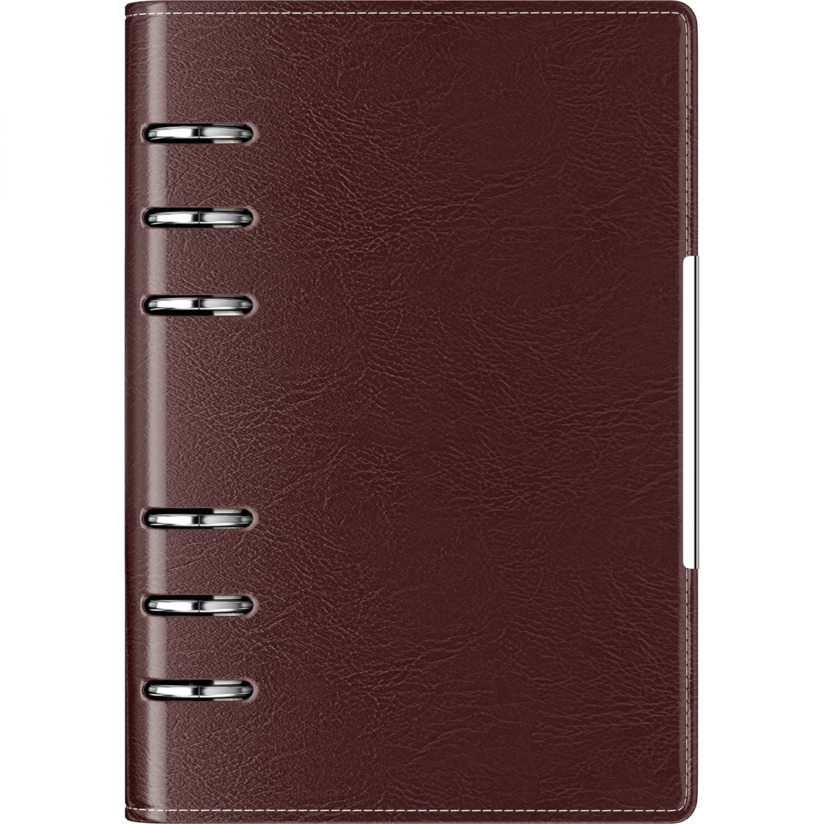 Coperta: Coperta din piele ecologica burgundi cu cusatura pe margine si ornament metalic vertical Dimensiuni: 110 x 145 mm