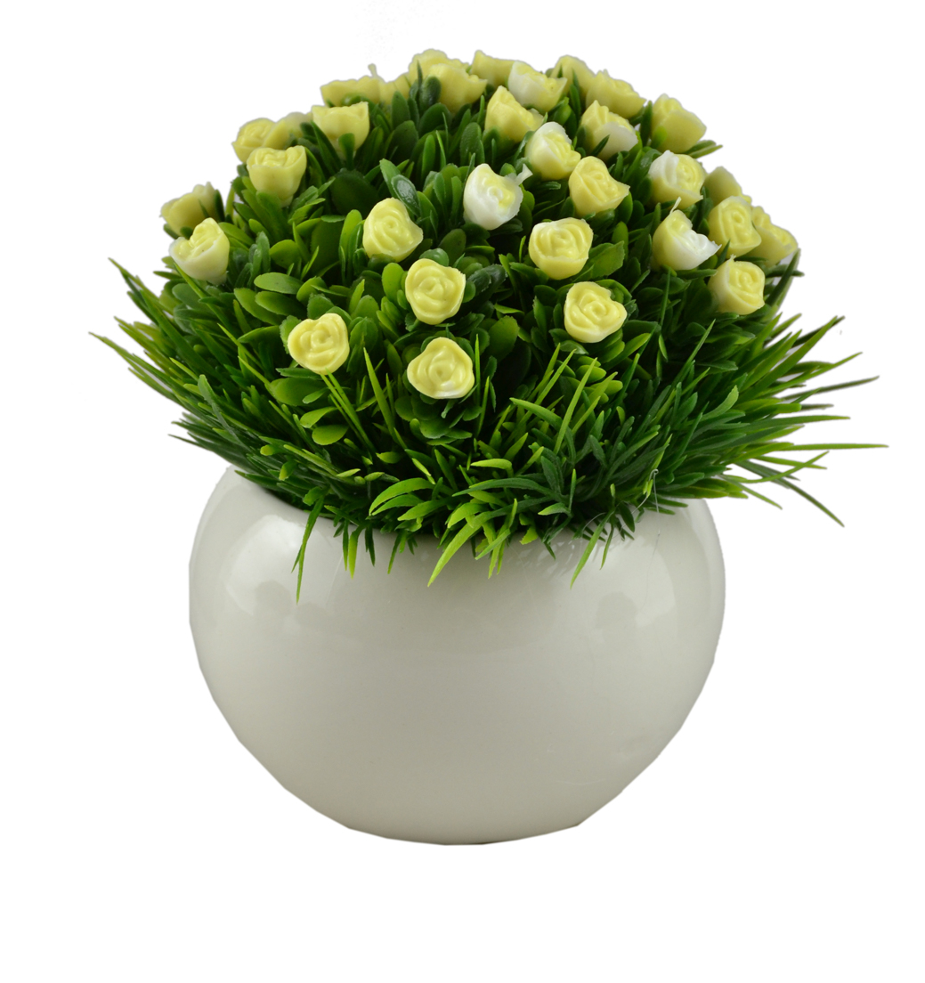 Floarea artificială este realizată sub forma de heliotrop sau trandafiri pitici și este disponibilă în diverse culori. Este potrivita pentru decorarea spatiilor interioare si adauga un aspect placut fara intretinere. Dimensiunea compacta o face usor de integrare in diferite decoruri.