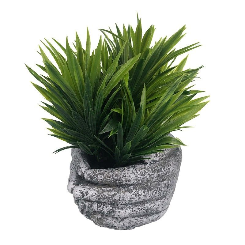 Ghiveci din ceramica in forma unei maini unite, cu plante din plastic.