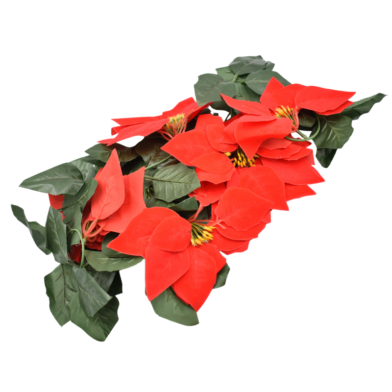 Ghirlanda de Crăciun 190 cm este decorul perfect pentru a aduce magia sărbătorilor în casa ta. Cu flori roșii de Crăciuniță și frunze verzi bogate, oferă un aspect natural și festiv oriunde o așezi.