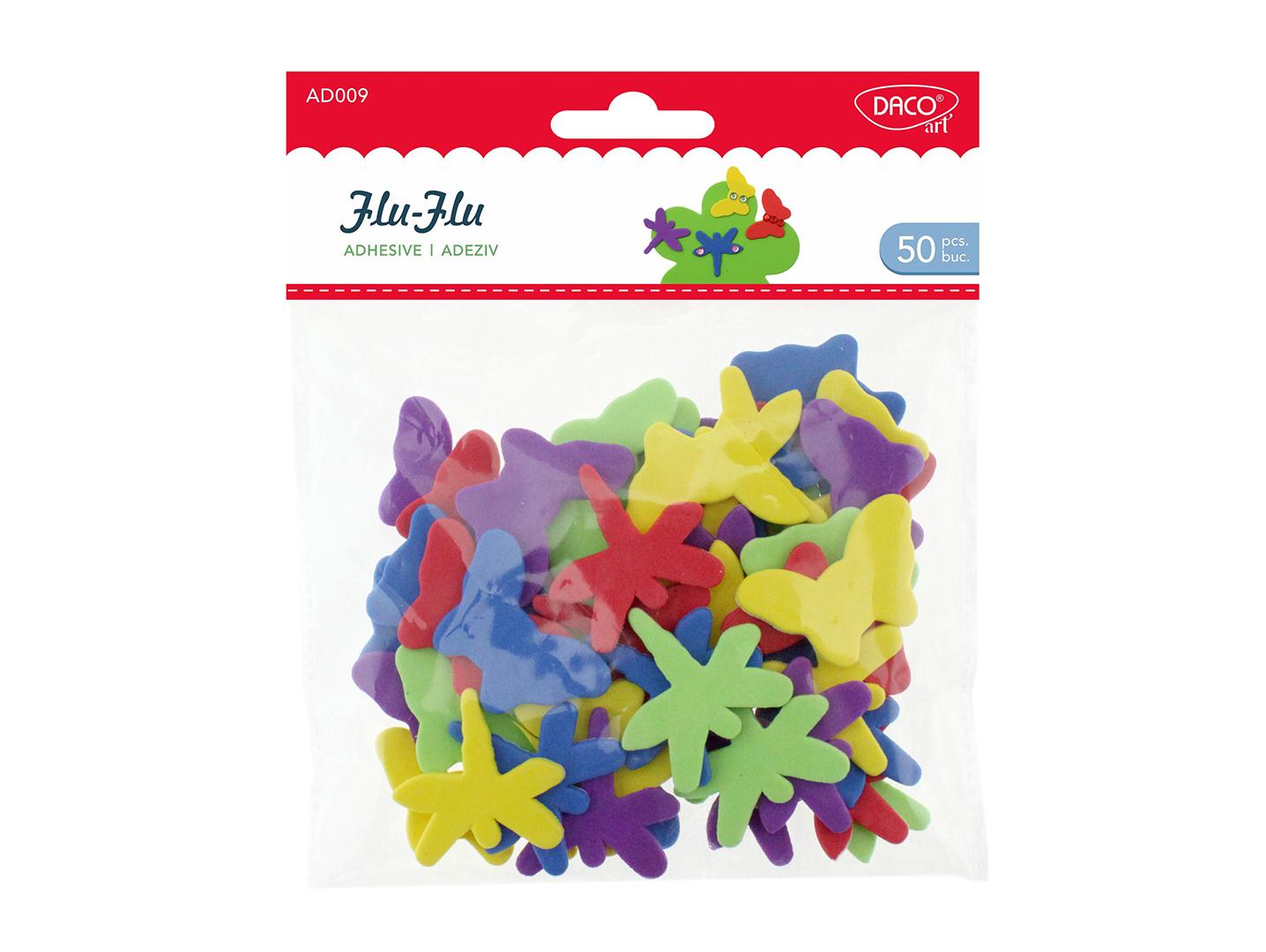 Setul de accesorii craft Flu-Flu Daco conține 50 de insecte autoadezive din spumă, în formă de fluturi și libelule. Sunt ideale pentru proiecte creative, colaje și activități școlare. Culorile vii și dimensiunile variate oferă un efect decorativ atractiv.