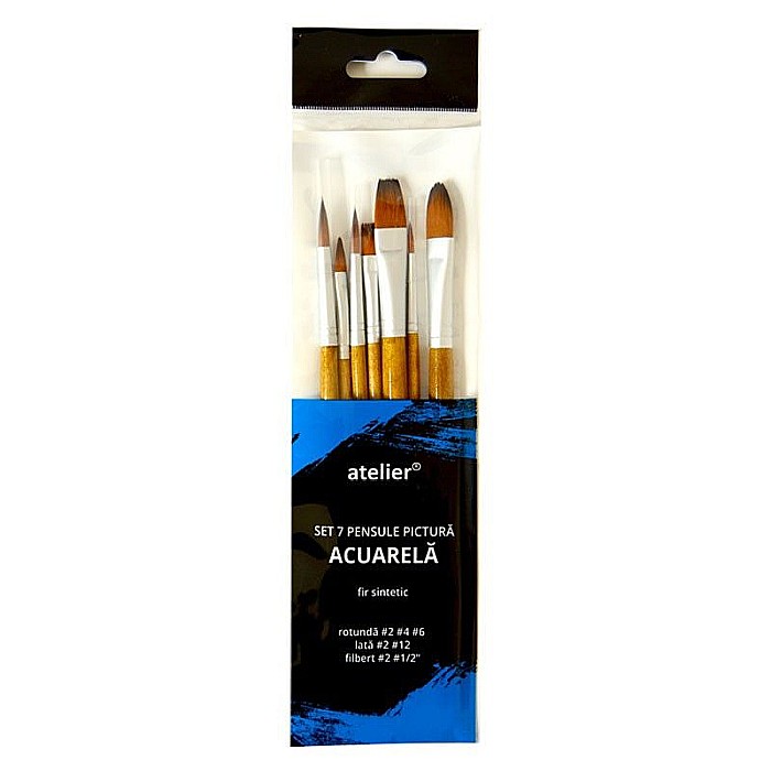 Ideale pentru pictura in acuarela sau alte culori solubile in apa: acrilic, tempera sau gouache. Fir sintetic flexibil, cu o buna capacitate de incarcare cu apa sau culoare, rezistent si usor de curatat. Alternativa economica la pensulele cu par natural. Maner scurt din lemn si feronerie turnata dintr-o bucata.