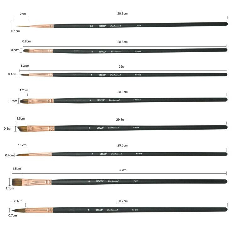 Setul 15+1 pensule Enchanted DACO este conceput pentru pasionații de pictură, artizanat sau pentru utilizatorii care doresc un set complet și versatil. Cele 15 pensule incluse au forme și mărimi diferite, fiind potrivite atât pentru detalii fine, cât și pentru aplicarea culorii pe suprafețe mai mari, oferind control și precizie în realizarea lucrărilor artistice.