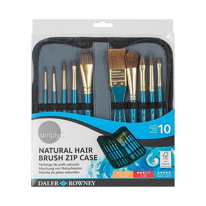 Trusă cu 10 pensule de mărimi diferite, cu păr natural. Include penar practic, închis în fermoar. Recomandate pentru pictat în acuarelă.