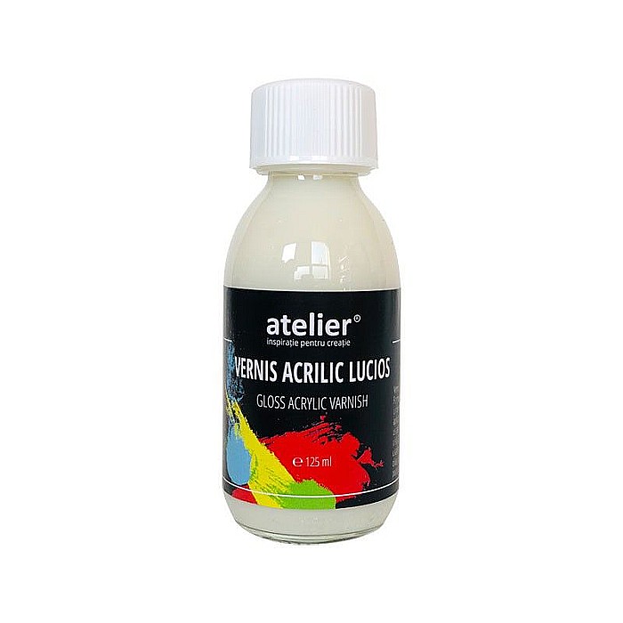Vernis final pentru pictura in acrilice sau ulei. Contine rasina acrilica in emulsie apoasa si agenti de stabilizare. Formeaza o pelicula lucioasa, transparenta, uniforma, rezistenta, ce nu ingalbeneste.