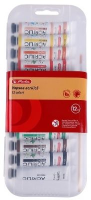 Vopsea acrilica Herlitz, tub metal 12 ml, 12 culori.