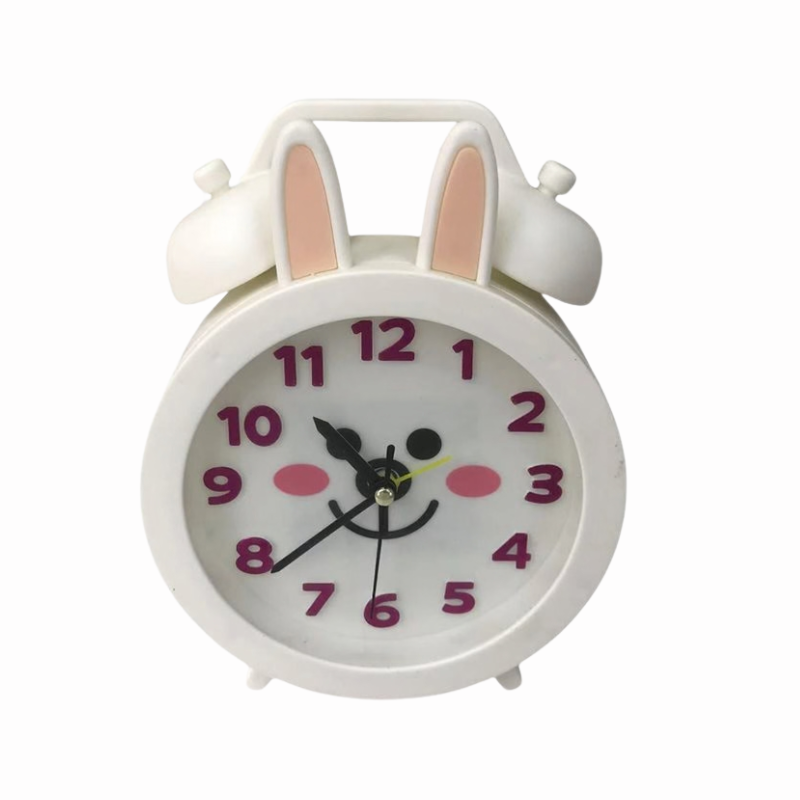 Ceasul de masă cu urechi de iepuraș este un accesoriu simpatic și funcțional, conceput pentru a aduce un plus de veselie oricărui spațiu. Designul rotund, cu detalii inspirate din lumea copiilor și urechi decorative în partea superioară, îl face potrivit pentru camera celor mici, dar și pentru birou sau noptieră.