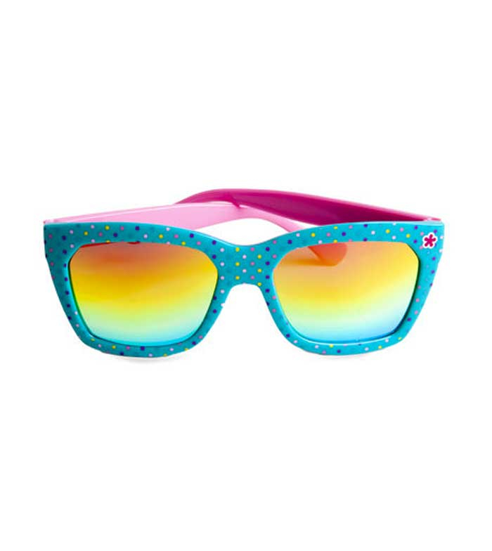Transformă orice zi însorită într-un motiv de bucurie cu ochelarii de soare curcubeu de la Martinelia. Cu un design plin de culoare, acești ochelari sunt perfecți pentru copii energici care adoră să iasă la joacă. Ramele albastre decorate cu buline colorate și brațele roz creează un contrast vesel și atrăgător, iar lentilele cu efect oglindă oferă nu doar stil, ci și protecție eficientă împotriva razelor UV.