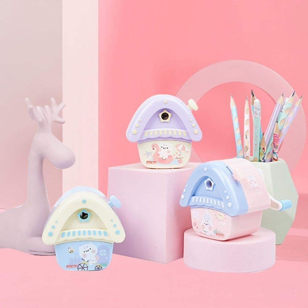 Această ascuțitoare cu manivelă, realizată în formă de căsuță, este concepută pentru a face procesul de ascuțire mai ușor și mai distractiv. Mecanismul cu manivelă permite o ascuțire uniformă, fără efort, fiind potrivit atât pentru acasă, cât și pentru școală.