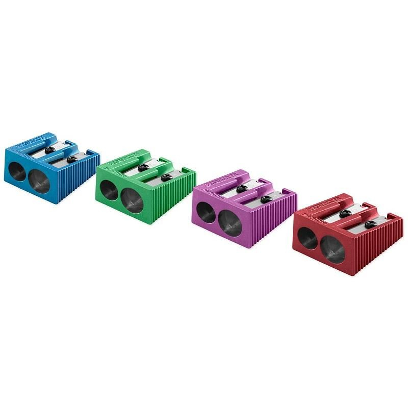 Ascuțitoarea metalică dublă Staedtler este practică și rezistentă, ideală pentru utilizarea zilnică la școală, birou sau acasă. Permite ascuțirea precisă atât a creioanelor grafit, cât și a celor colorate. Designul compact și finisajul colorat o fac ușor de transportat și plăcută de folosit.