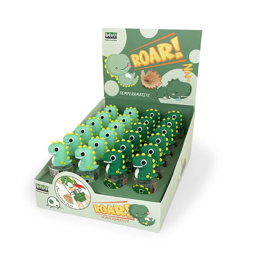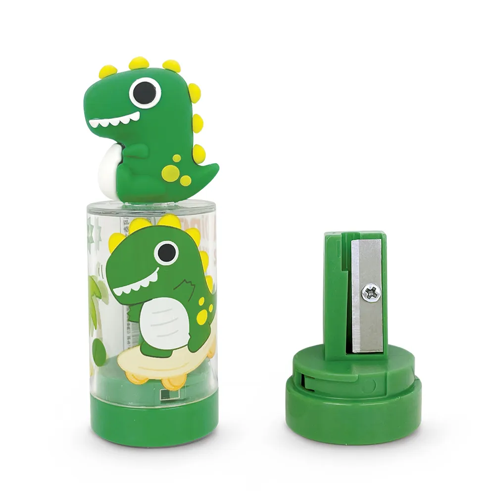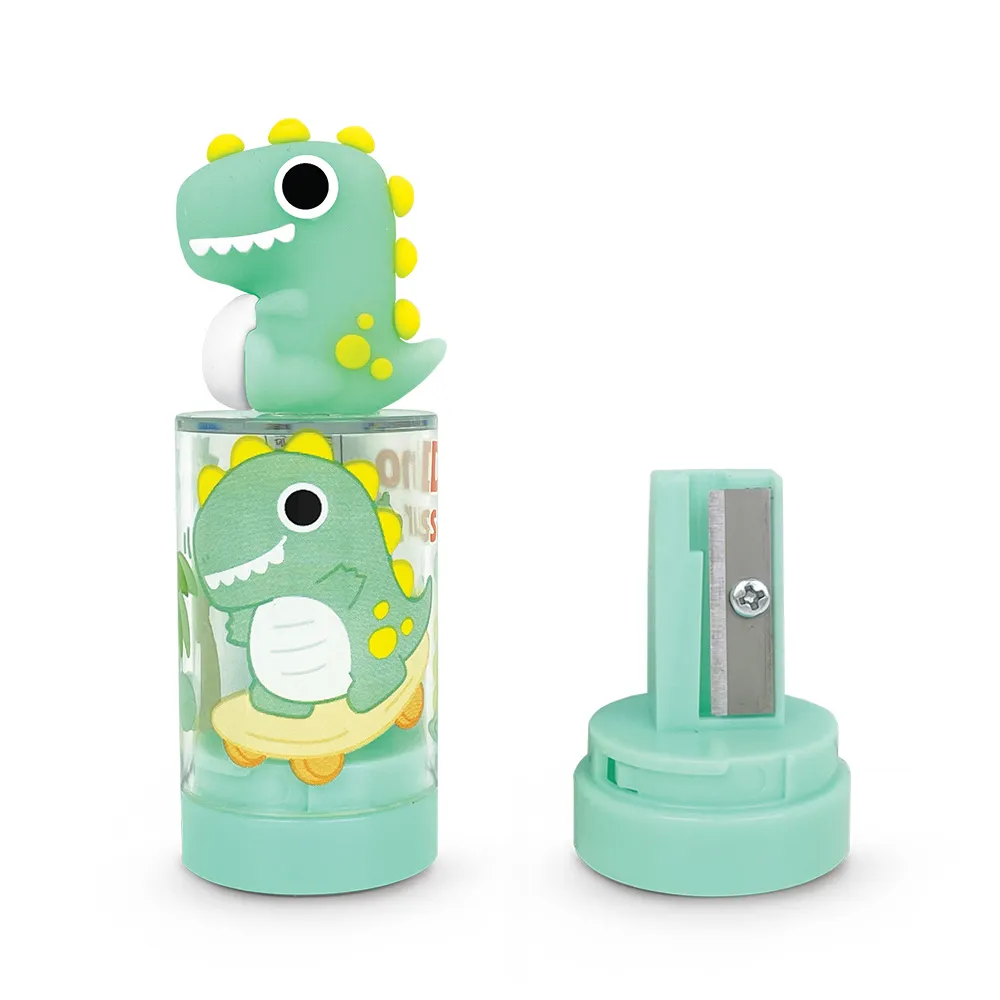 Ascuțitoarea simplă cu container, model dinozaur, îmbină utilul cu un design jucăuș care îi cucerește rapid pe copii. Este realizată într-o nuanță de verde plăcută, iar figurina dinozaur de deasupra o transformă într-un accesoriu simpatic, numai bun de păstrat mereu la îndemână în penar.