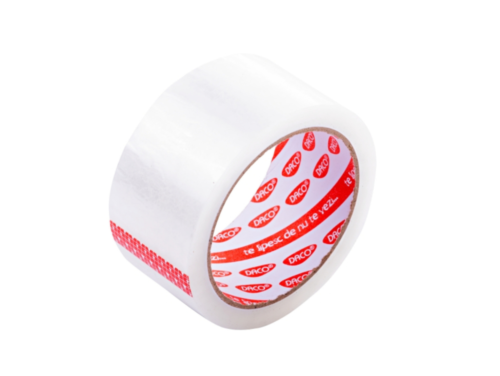 Alege banda adezivă transparentă Daco pentru sigilare sigură și discretă. Cu lățime de 4,8cm și lungime de 66m, este ideală pentru ambalare și uz zilnic. Potrivită pentru birou, depozit sau acasă.