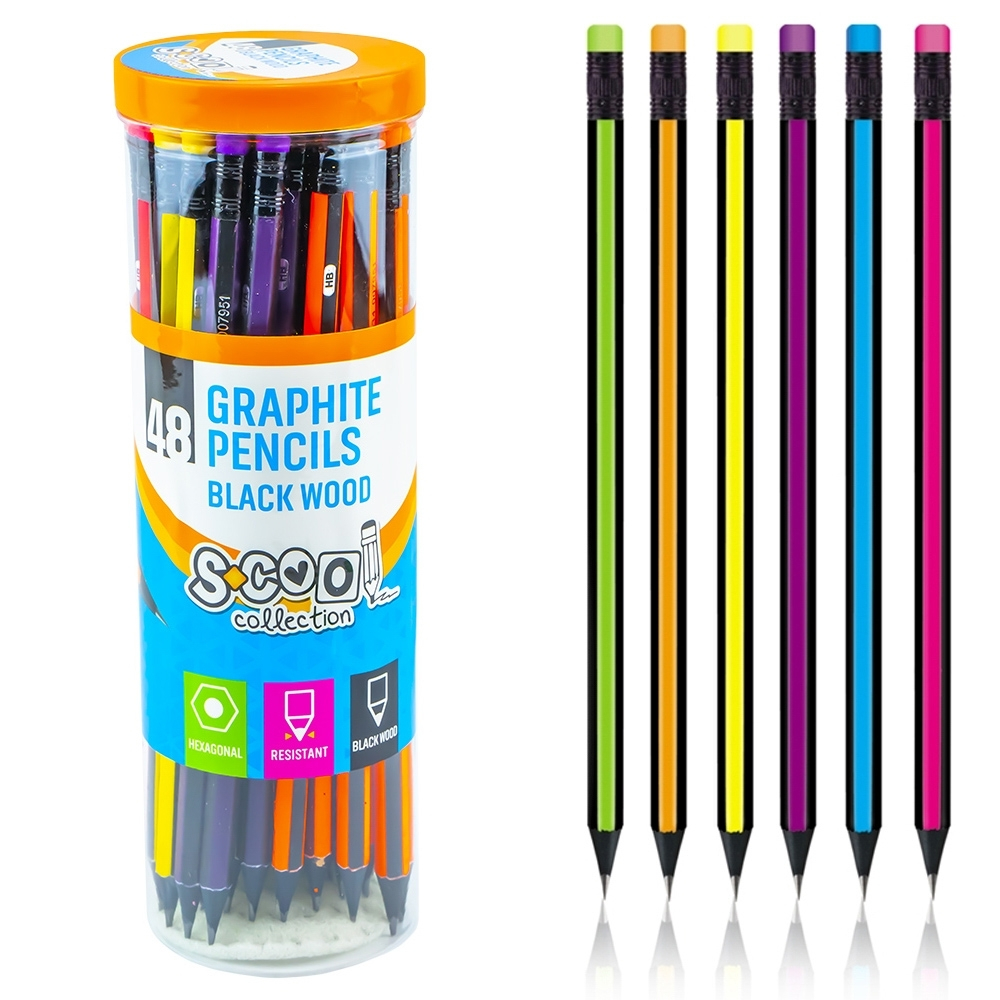 Creionul grafit HB S Cool Collection este realizat din lemn negru și are formă hexagonală, oferind stabilitate și confort în timpul utilizării. Designul ergonomic împiedică alunecarea și permite o prindere sigură, fiind potrivit atât pentru elevi, cât și pentru utilizare la birou.