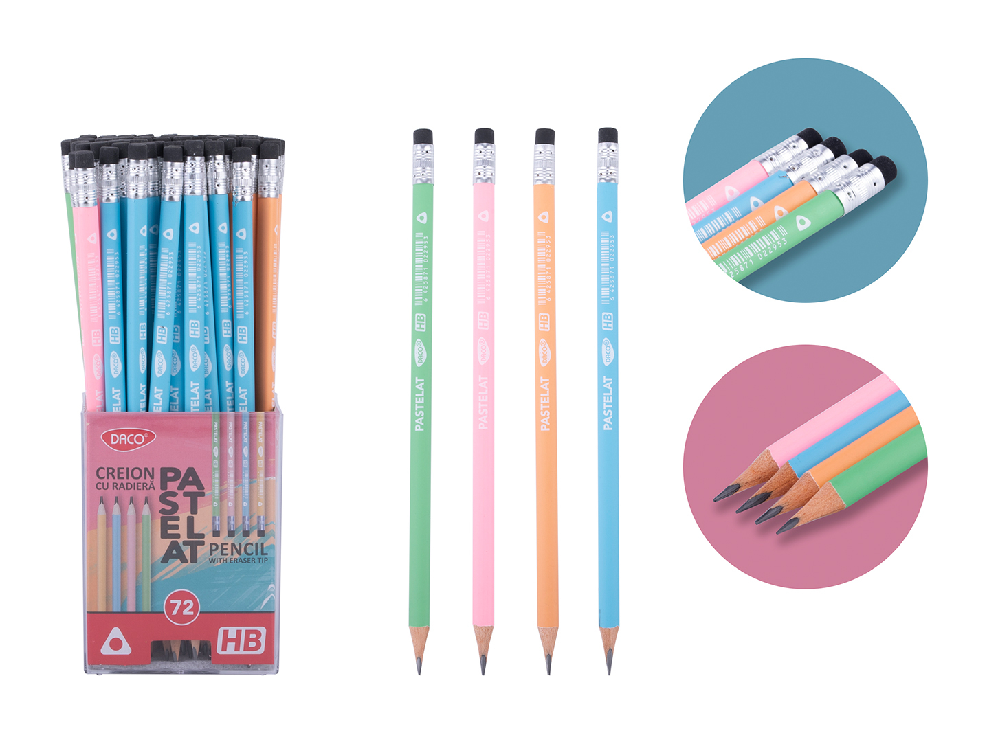 Creionul negru cu radieră Pastelat HB Daco îmbină funcționalitatea cu un design atractiv, în culori pastelate plăcute, potrivite atât pentru copii, cât și pentru adulți. Este alegerea perfectă pentru scris zilnic, teme, notițe sau schițe rapide.