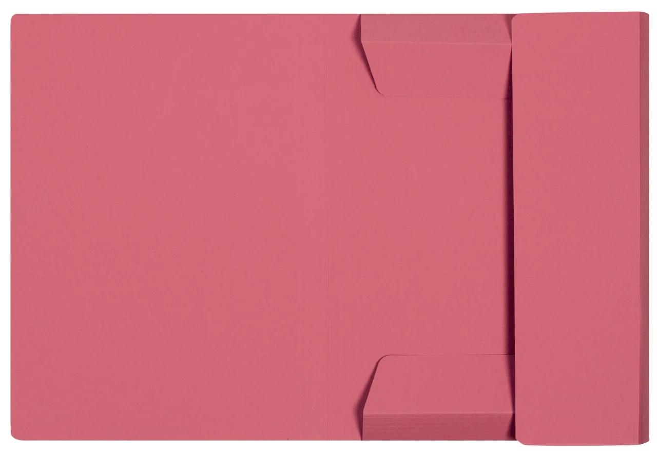 Designul modern și chic al dosarului de culoare roșu include trei clape interioare poziționate pe coperta din spate, care asigură păstrarea documentelor în interior fără riscul de a aluneca, chiar și în absența unui elastic de închidere. Dosarul are o capacitate generoasă de stocare, putând găzdui aproximativ 150 de coli de hârtie. Pe coperta frontală este prevăzută o zonă de indexare practică, ce permite personalizarea și identificarea rapidă a conținutului prin notarea titlurilor sau categoriilor pe liniile preimprimate.