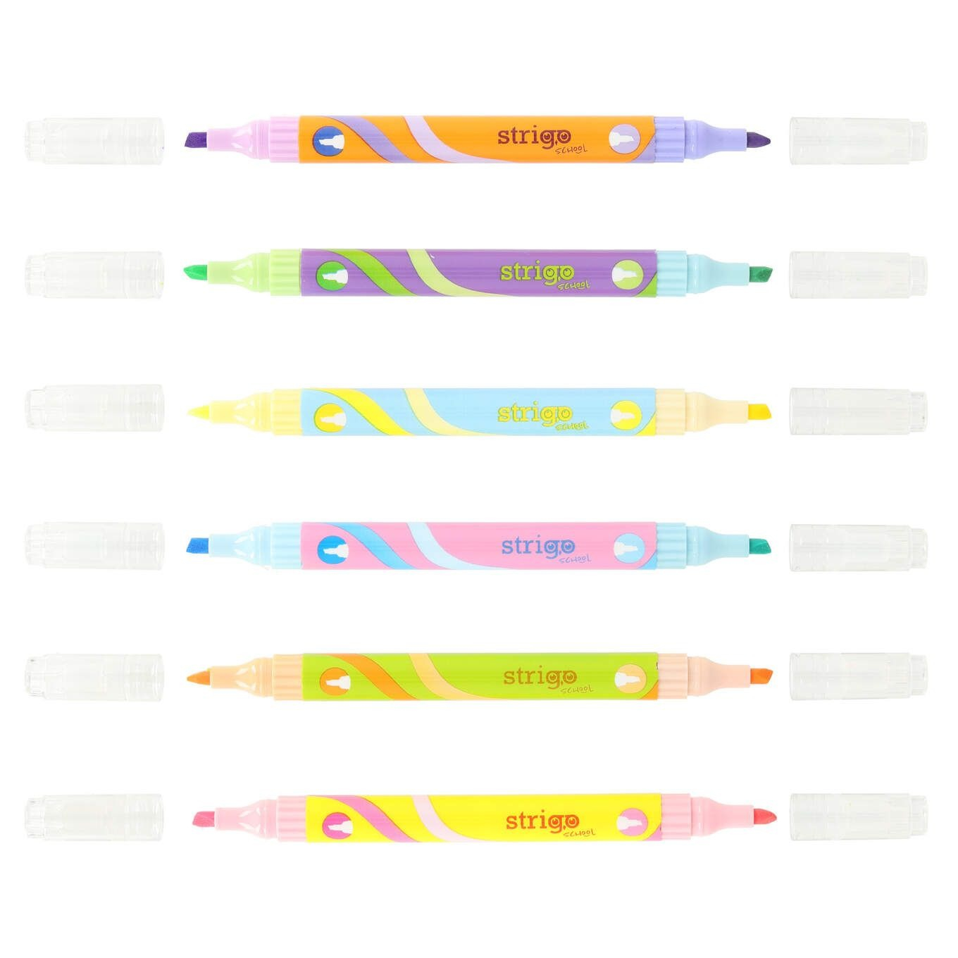 Setul de 6 markere evidențiatoare duble Strigo este soluția practică pentru organizarea eficientă a informațiilor. Fiecare marker oferă două culori, astfel încât ai la dispoziție 12 nuanțe vibrante – 6 culori standard și 6 neon – pentru a evidenția rapid și clar textul important.