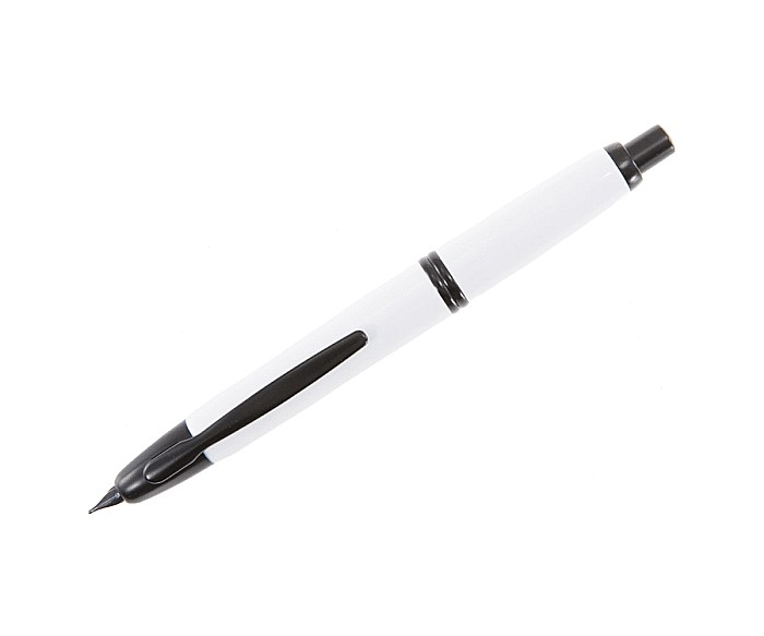 Stiloul Pilot Capless Ultra Matt este confectionat dintr-un corp metalic, alb mat, cu accente negre.