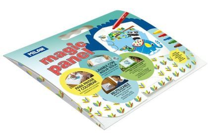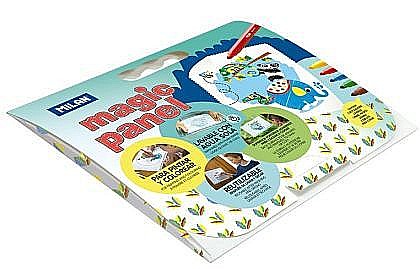 Setul contine: 1 panou reutilizabil, 1 cutie cu 5 carioci lavabile, 6 sabloane pentru desen.