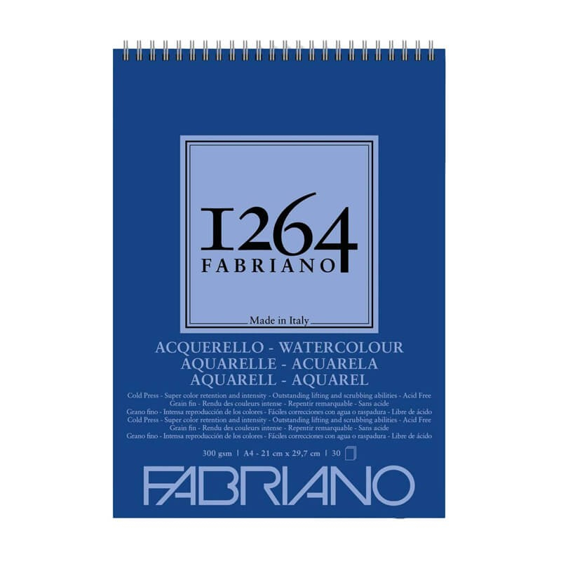 Blocul de hârtie pentru acuarelă Watercolor 1264 Fabriano este realizat din celuloză de calitate superioară, având o textură medie (cold pressed) și un gramaj de 300 g/mp, ideal pentru lucrări durabile și expresive. Hârtia este albă, cu pH neutru și proprietăți excelente de conservare, contribuind la păstrarea intensității culorilor și a calității lucrărilor în timp.