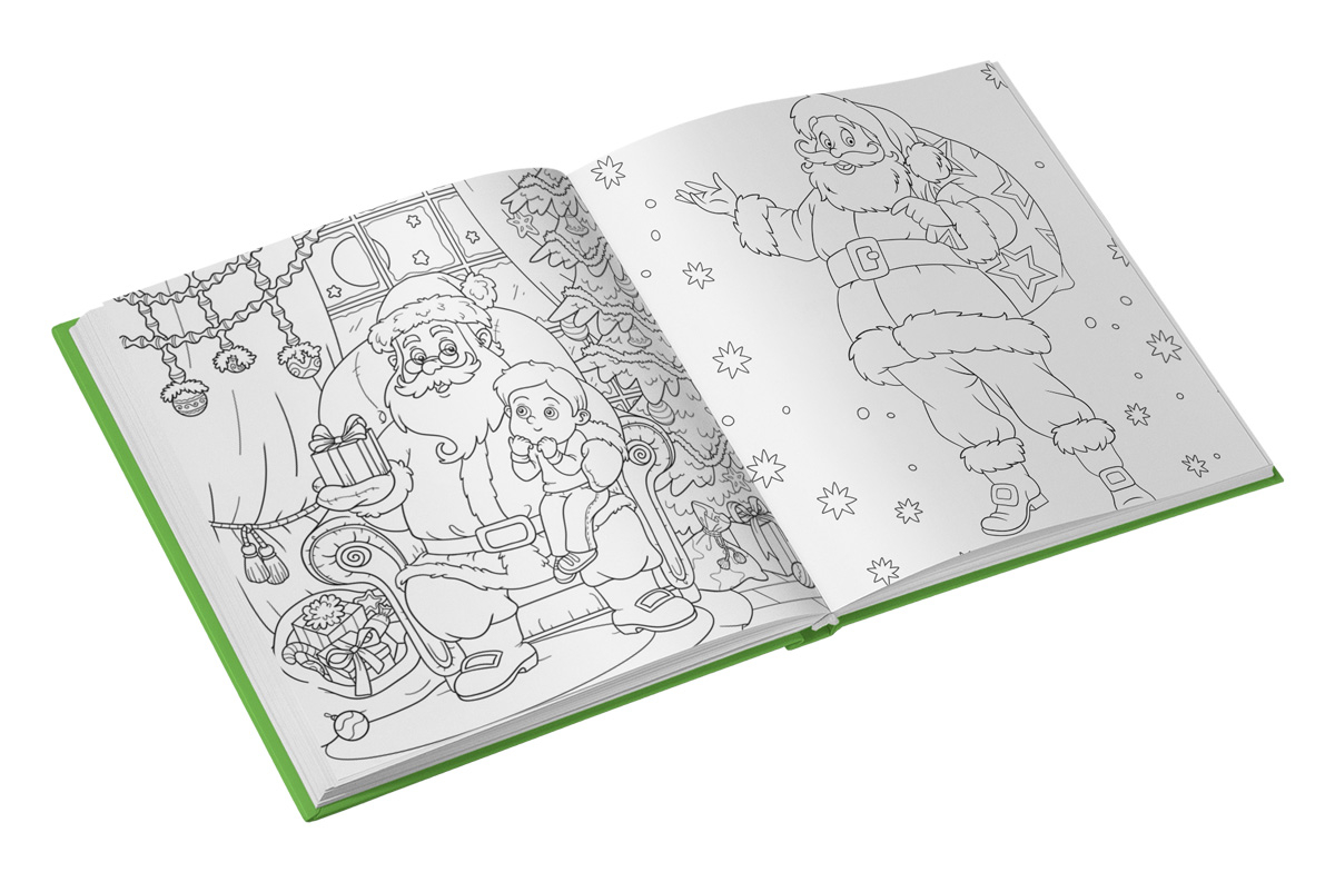 Fiecare pagină oferă ocazia de a colora situații familiare și îndrăgite, precum dimineața Crăciunului, când darurile sunt găsite sub brad, sau momentul amuzant în care Moșul intră pe horn cu sacul plin de jucării.