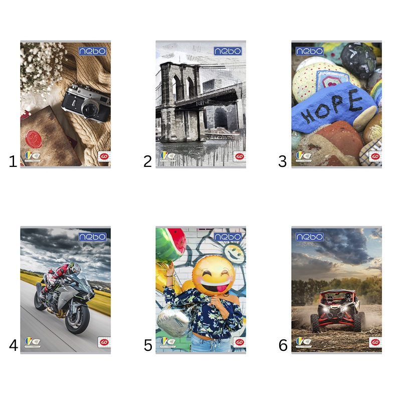 Coperta lucioasă, cu design policrom la exterior și interior alb, protejează eficient conținutul caietului și oferă un aspect modern și atractiv.