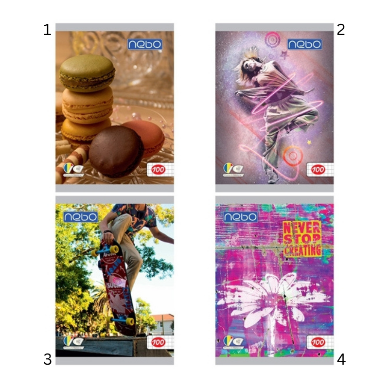 Coperta lucioasă, cu design policrom la exterior, oferă un aspect modern și atrăgător, iar interiorul are aspect natur. Cele 100 de file îți oferă suficient spațiu pentru un volum mare de notițe și calcule pe parcursul semestrului.