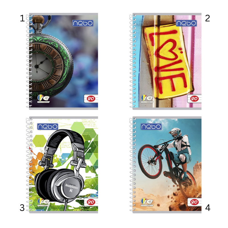 Caiet A5 dictando Nebo cu 80 file, ideal pentru școală și teme zilnice. Prevăzut cu spiră metalică pentru deschidere ușoară și utilizare confortabilă. Copertă policromă lucioasă, cu design atractiv.