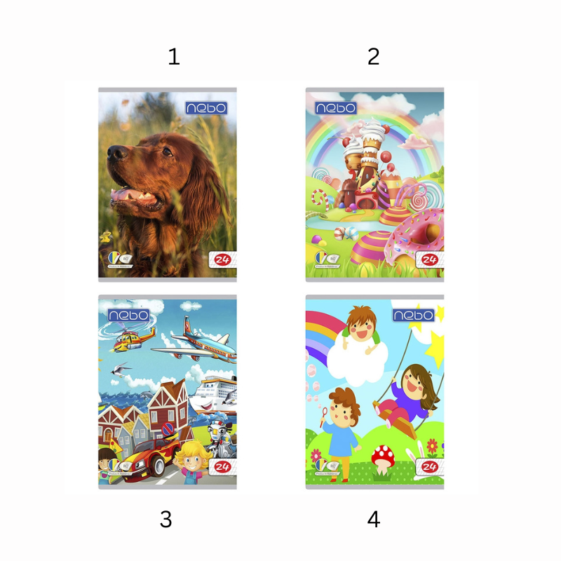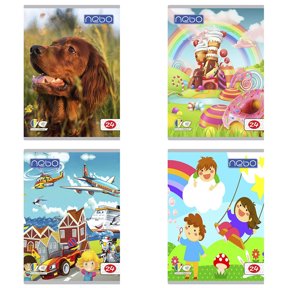 Caiet tip I A5 Nebo cu 24 de file, potrivit pentru elevii din clasele primare. Liniatură specială pentru învățarea scrisului. Format practic și copertă policromă atractivă.
