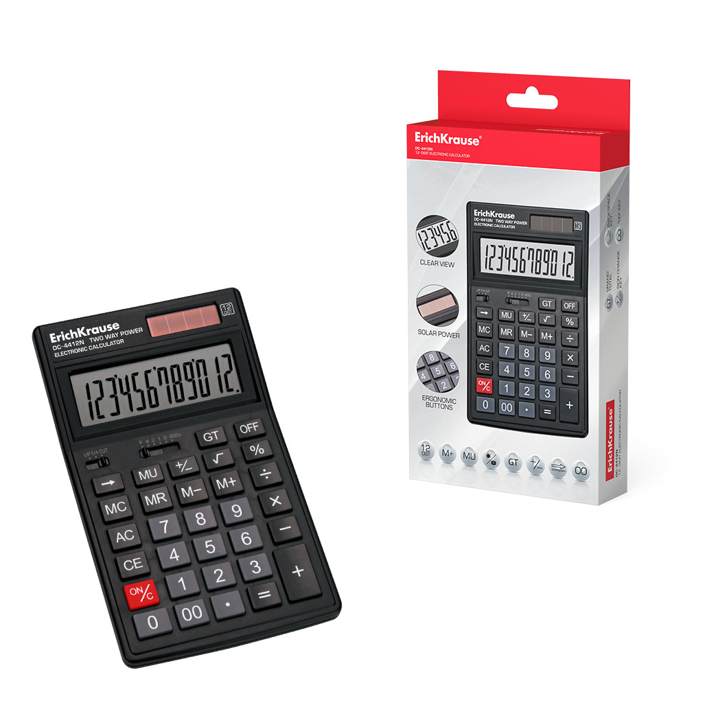 Poti alege calculatorul de birou ErichKrause DC-4412N Classic pentru calcule complexe si precise, beneficiind de un afisaj LCD generos cu 12 cifre. Echipat cu functii avansate de rotunjire si alimentare duala, acest instrument profesional este ideal pentru contabilitate si gestiune comerciala.