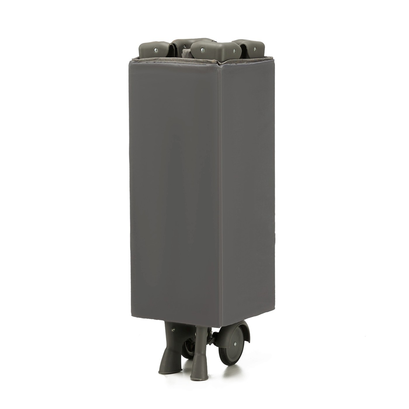 Patut de calatorie cu accesorii Kinderkraft JOY, 2 in 1, GREY Patutul de calatorie JOY 2 in 1 GREY este solutia ideala pentru toti parintii, care calatoresc des. Este usor de pliat pana la dimensiuni compacte, usor si rezistent, iar setul contine o geanta de transport confortabila. Este perfect si pentru utilizarea zilnica si ideal pentru odihna si somn. Acest patut este un adevarat „centru de operatiuni” cu numeroase facilitati si accesorii. Este echipat cu un sistem rapid de pliere si desfacere, precum si dubla protectie impotriva auto-plierii. Avantaje Siguranta: Rama de otel foarte puternica, care asigura stabilitatea patutului. Patutul este dotat cu dubla protectie impotriva auto-plierii (de ex. atunci cand copilul sare sau se invarte). Cele 3 laturi ale patutului sunt realizate din plasa, care asigura circulatia adecvata a aerului dar si observarea discreta a copilului. Patutul JOY 2 in 1 GREY este fabricat in conformitate cu Standardul European EN 716. Confort: Intrarea laterala ii permite copilului sa se urce si sa coboare singur din patut. JOY 2 in 1 GREY este dotat cu un sistem rapid si simplu de pliere si desfacere. Patutul vine impreuna cu o podea moale cu suprafata de 118x63 cm. Podeaua poate fi montata pe 2 niveluri. Produsul este foarte usor de pastrat curat. Functionalitate: Patutul JOY 2 in 1 GREY este usor si de aceea foarte simplu de mutat. În plus, este dotat cu doua roti ce pot fi blocate. Are dimensiuni reduse dupa pliere: 77x26,5x26,5 cm. Accesorii suplimentare Carusel cu sunet, luminite si 3 jucarii de plus, care ii permit celui mic sa isi antreneze atentia, concentrarea si sa isi intinda mainile. Cosuri pentru scutece, ce permit parintilor organizarea spatiului din camera. Suprafata de infasat pentru copii de pana la 12 luni, sarcina maxima: 11 kg Fabricatie Materiale: plastic, otel, poliester 200D Dimensiuni: 129 x 73 x 76,5 (cm) Dimensiunile saltelei: 117 x 60 cm Greutate: 14,2 kg Dimensiuni/greutatea cutiei: 77 x 26,5 x 26,5 (cm)/15 kg