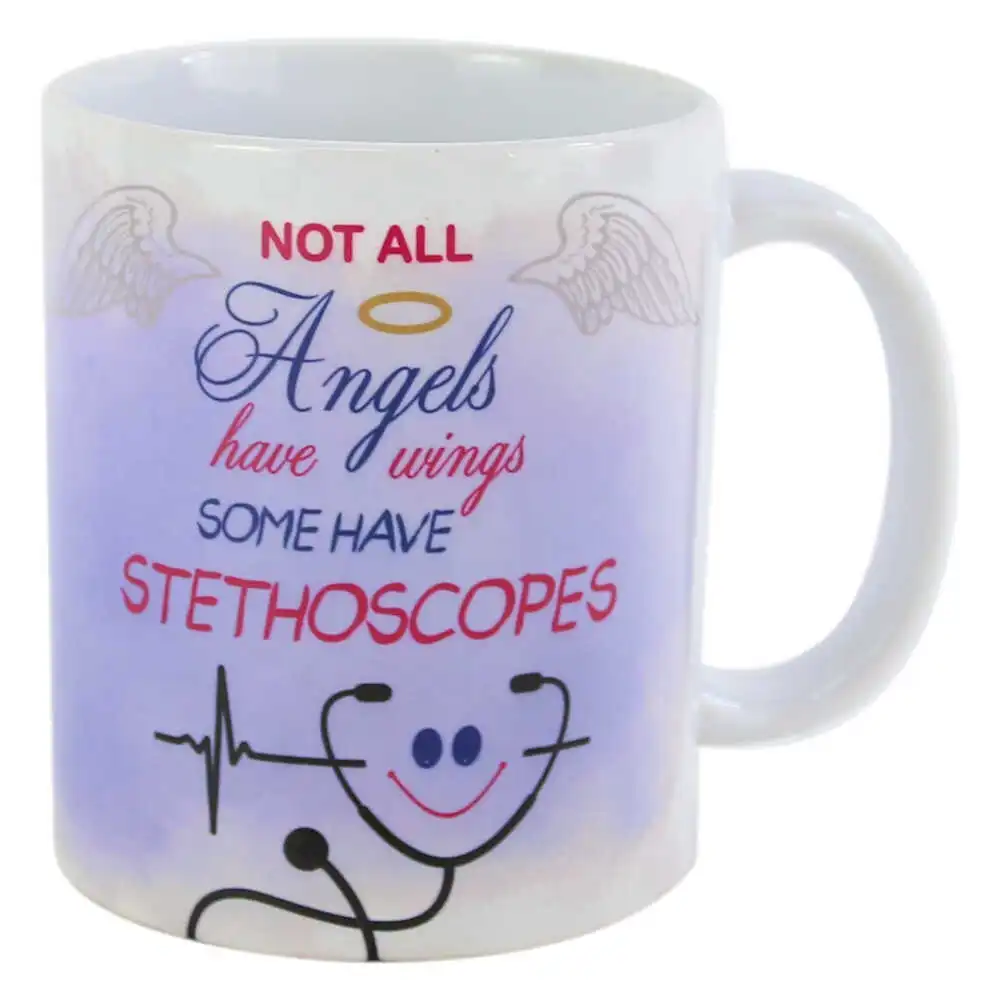 Cană ceramică de 330 ml, cu un design modern și mesaj emoționant: „Not all Angels have wings, some have stethoscopes”. Este alegerea perfectă pentru a aduce un plus de inspirație în fiecare zi, mai ales pentru cei din domeniul medical sau pentru persoanele dragi care merită apreciere.