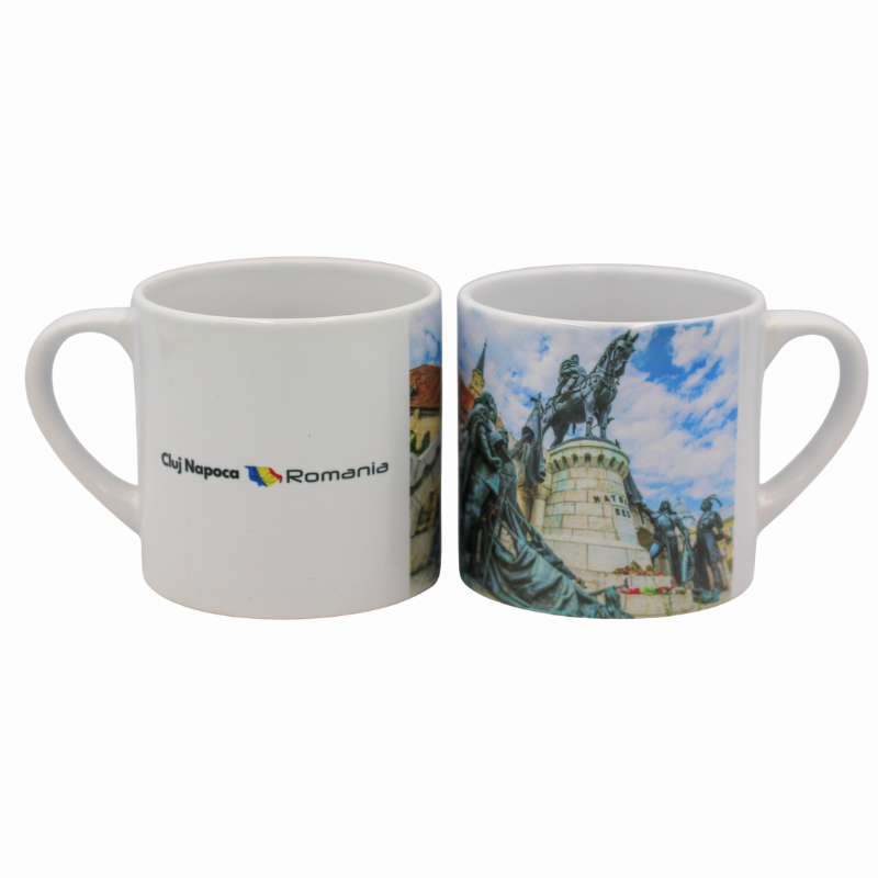Datorita dimensiunilor sale reduse, vei descoperi ca aceasta cana mini este extrem de practica, putand sa o utilizezi atat pentru servirea bauturilor preferate intr-o portie mica, cat si ca element decorativ pe biroul tau sau intr-o vitrina de suveniruri. Manerul ergonomic iti asigura o prindere confortabila, iar printul este rezistent, mentinandu-si intensitatea culorilor in timp. Fie ca o achizitionezi ca amintire dintr-o calatorie sau doresti sa o oferi cadou ca simbol al ospitalitatii clujene, aceasta cana mini reuseste sa iti surprinda esenta orasului intr-un format compact si estetic.