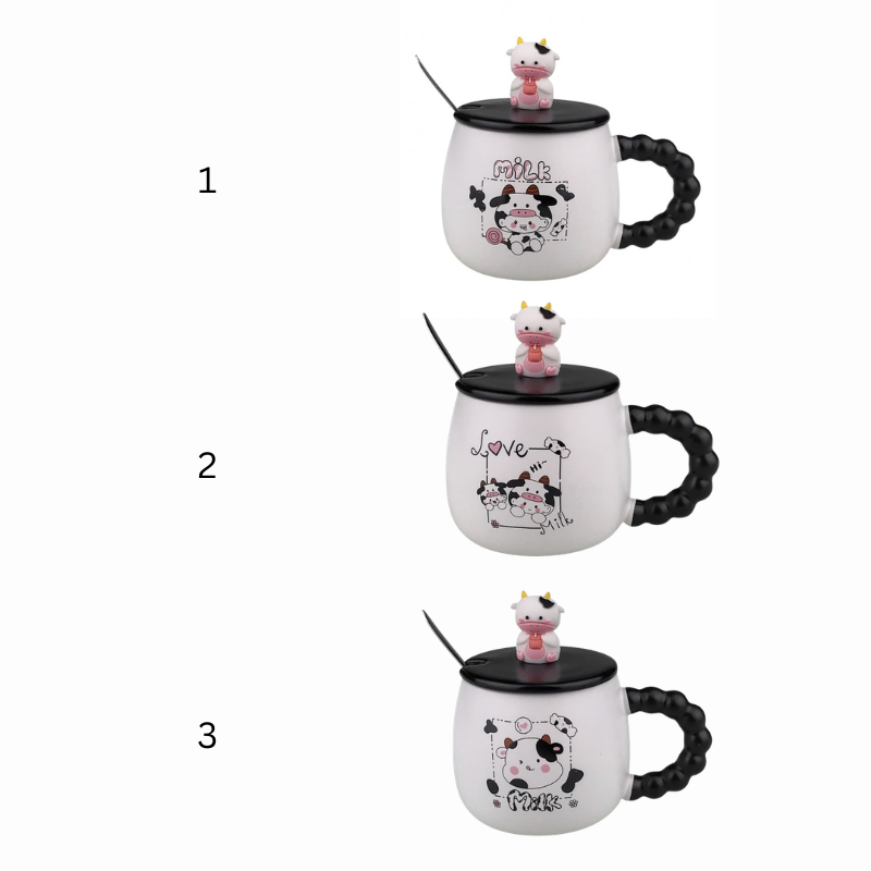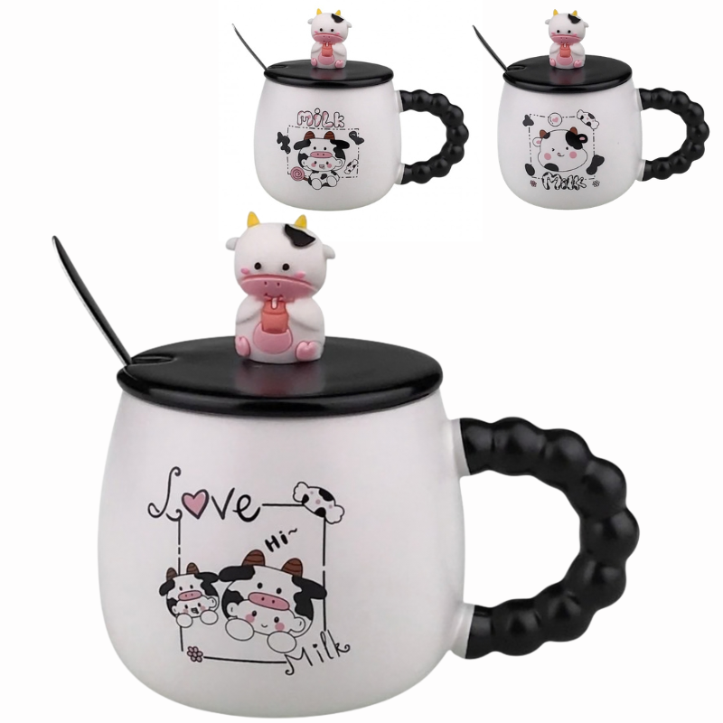 Cana ceramica cu vacuta si lingurita 9x12 cm modele diferite