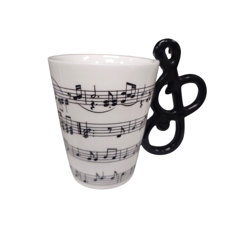 Elementul care o face cu adevărat specială este mânerul în formă de cheie Sol, realizat din ceramică neagră, care oferă un plus de personalitate și transformă cana într-un obiect decorativ deosebit. Este confecționată din ceramică, are o formă ușor conică și este confortabil de ținut în mână. Poate fi folosită zilnic pentru băuturi calde sau oferită cadou profesorilor de muzică, elevilor, artiștilor sau oricărui iubitor de note și armonii.