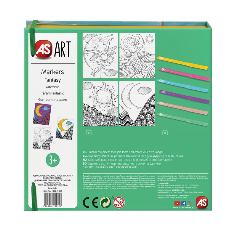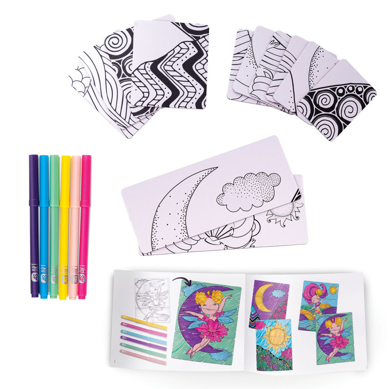 Set de pictura cu puzzle-uri care ii ajuta pe copii sa-si exercite observatia, imaginatia si gandirea creativa. Desenati toate piesele puzzle-ului, apoi alaturati-le si creati imaginea. Contine 2 puzzle-uri cu doua fete (cu 6 piese mari de diferite dimensiuni), 6 markere si un ghid de culoare, detaliat cu imagini pas cu pas pentru a obtine un rezultat deosebit.