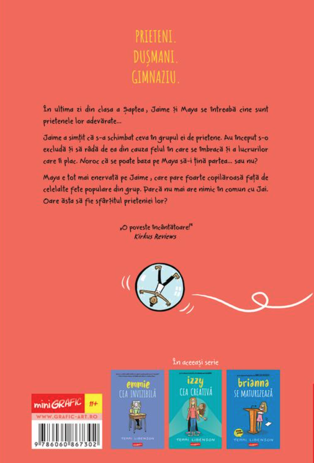 Cartea urmărește, în stilul cald și expresiv al lui Terri Libenson, două perspective diferite asupra aceleiași prietenii. Jaime simte că nu mai este bine-venită în propriul grup și că este judecată pentru tot ce o definește. În același timp, Maya începe să se lase influențată de presiunile grupului și se îndepărtează de prietena ei cea mai loială. Întrebările, frustrările și momentele tensionate ale celor două se împletesc într-o poveste grafică autentică despre prietenie, identitate și maturizare. Jaime cea ignorată devine astfel un ghid pentru toți copiii care traversează perioada complicată a gimnaziului și învață să aibă încredere în propriile alegeri.
