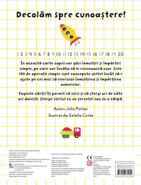 O carte interactivă și distractivă care îi ajută pe cei mici să învețe adunările și scăderile simple, folosind exemple clare și un șir numeric ușor de urmărit. Cu pagini pe care pot scrie și șterge ori de câte ori au nevoie, copiii exersează în ritmul lor, transformând matematica într-o activitate plăcută și accesibilă.