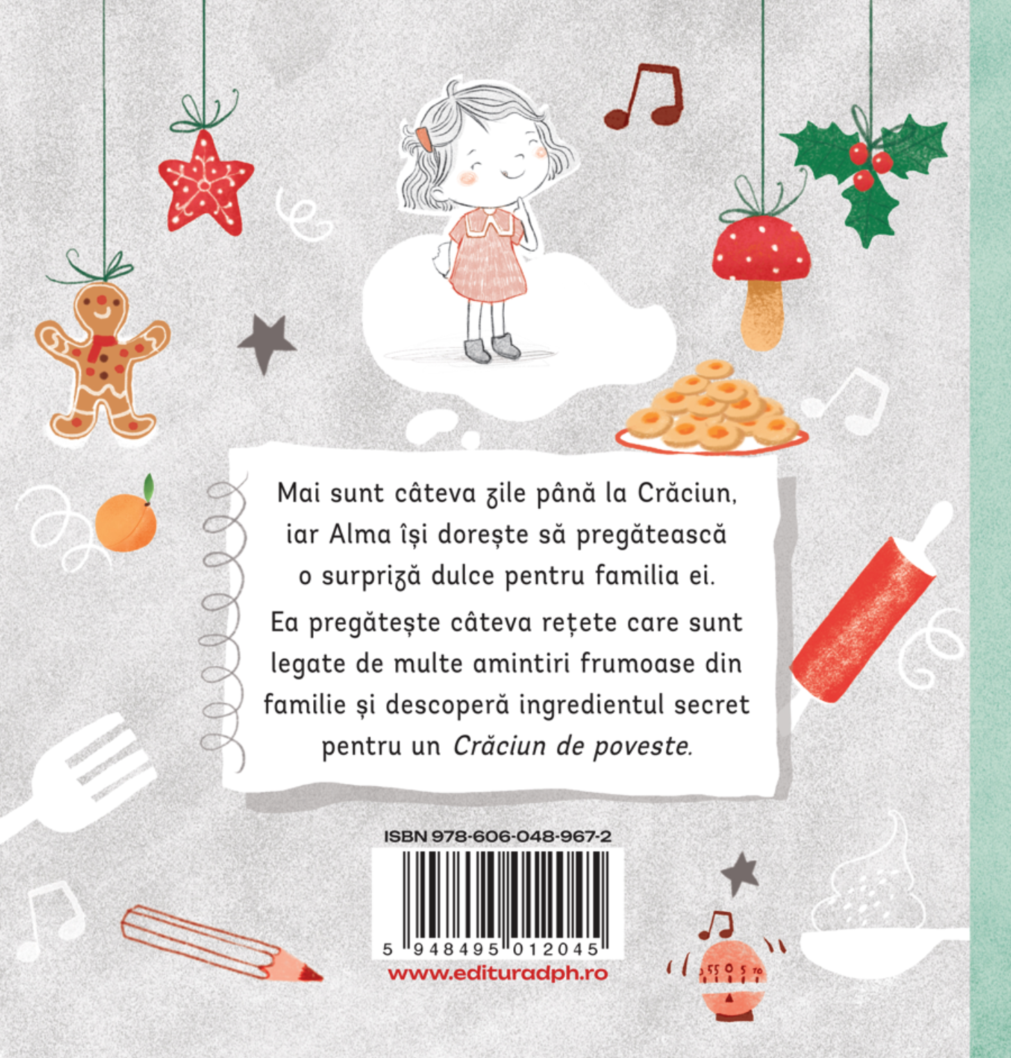 O poveste caldă de Crăciun despre familie, amintiri și bucuria de a fi împreună. În dorința de a pregăti o surpriză dulce, Alma descoperă că magia sărbătorilor nu stă în rețete perfecte, ci în dragostea împărtășită cu cei dragi. O carte care invită la momente speciale petrecute în familie.