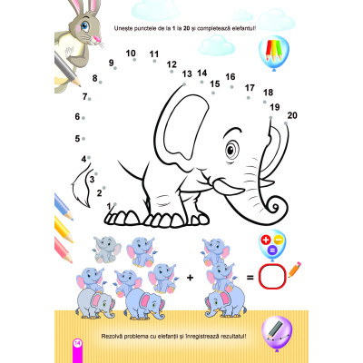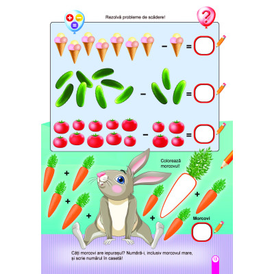 Această carte plină de activități îi ajută pe cei mici să își dezvolte spiritul de observație, dexteritatea și capacitatea de concentrare. Copiii sunt invitați să exploreze labirinturi cu iepurași, să unească puncte, să coloreze, să scrie, să numere și să calculeze, transformând învățarea într-o joacă distractivă.