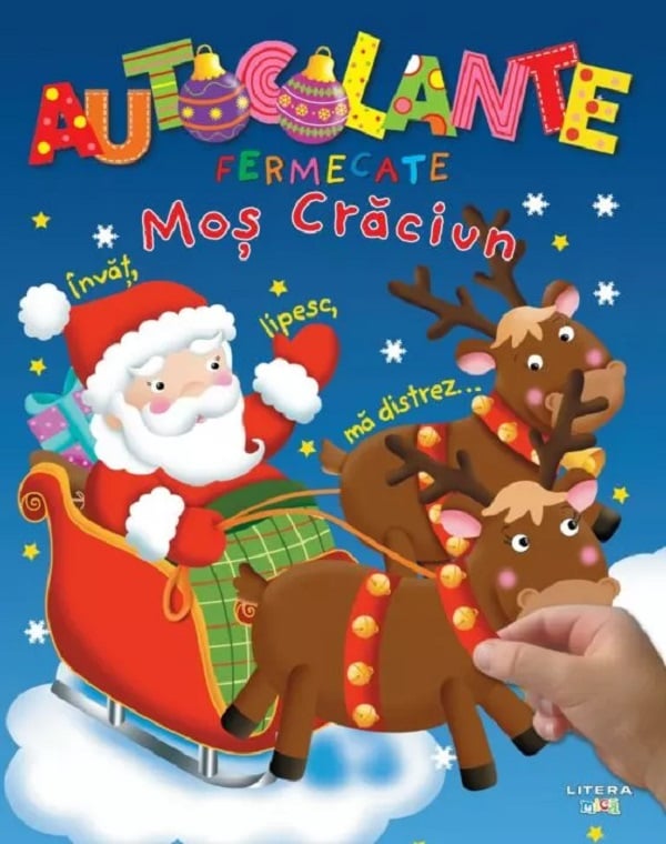 Această carte îi invită pe cei mici să se distreze în așteptarea lui Moș Crăciun prin activități simple și pline de farmec. Copiii pot lipi autocolantele incluse și pot completa scenele vesele de iarnă. Este o activitate potrivită pentru dezvoltarea creativității și pentru momentele de joacă în perioada sărbătorilor.